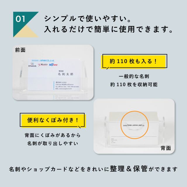 シンプルで使いやすく、入れるだけで簡単に名刺の整理が可能です。