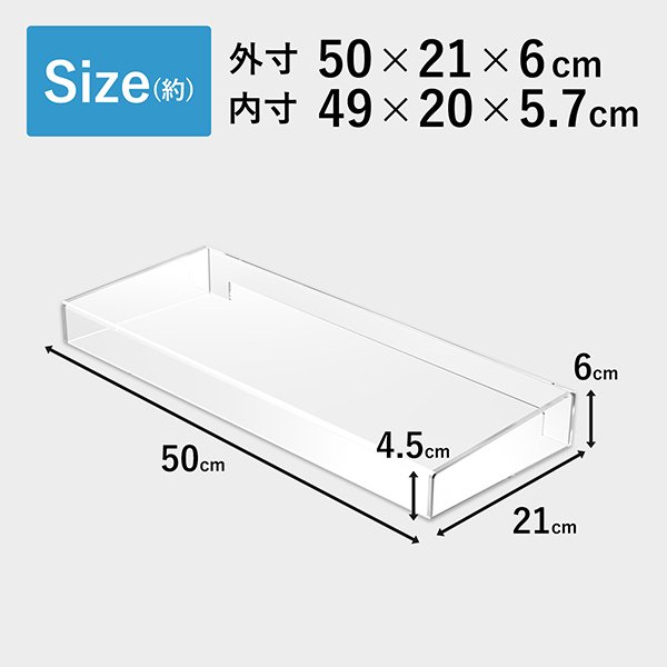 | サイズ(約) | 外寸:50×21×(高6 / 低4.5)cm 内寸:49×20×(高5.7 / 低4.2)cm |