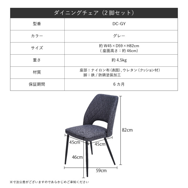 | サイズ(約) | 横45cm×奥行59cm×高さ82cm/座面高さ 46cm |