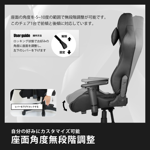 | 材質 | 合成皮革PU (シート表面) ポリウレタン (シート内材) 鋼材 (フレーム、シリンダー、ホイールベース) プラスチック (シリンダーカバー) |