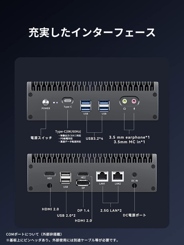 | 有線LAN | Intel i226 2.5GBASE-T/1000BASE-T/100BASE-TX/10BASE-Tx2ポート |