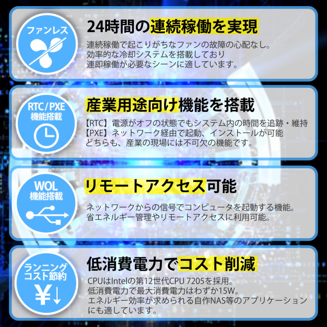 | 有線LAN | Intel i225 2.5GBASE-T/1000BASE-T/100BASE-TX/10BASE-T ×2ポート |