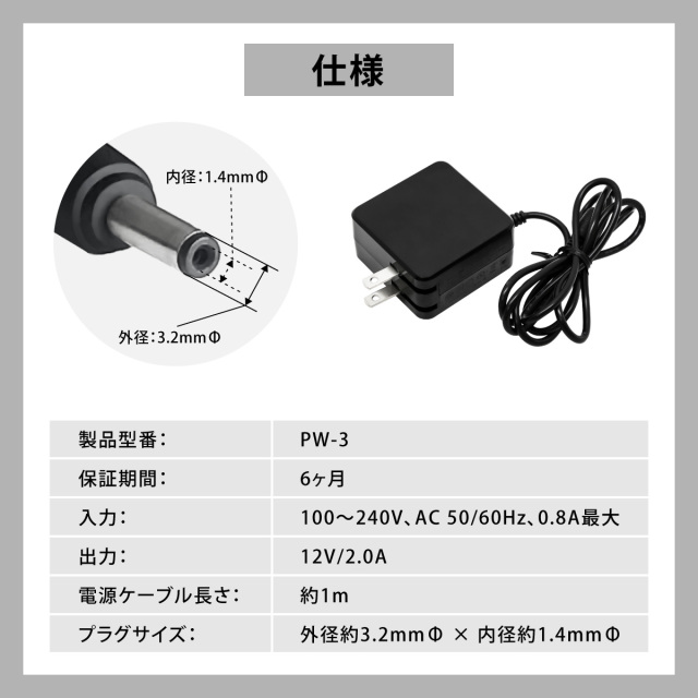 | 出力 | 12V/2.0A |