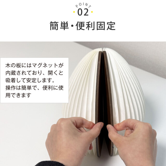 木の板にはマグネットが内蔵されており、開くと簡単に固定されます。