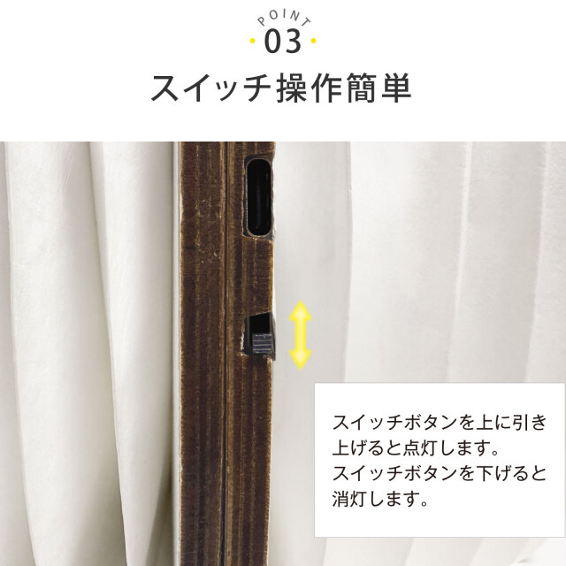スイッチを上に引き上げると点灯、下げると消灯します。
