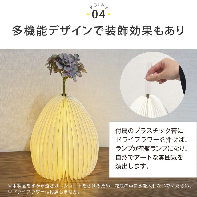 付属のプラスチック管にドライフラワーを挿せば、自然でアートな雰囲気を演出します。