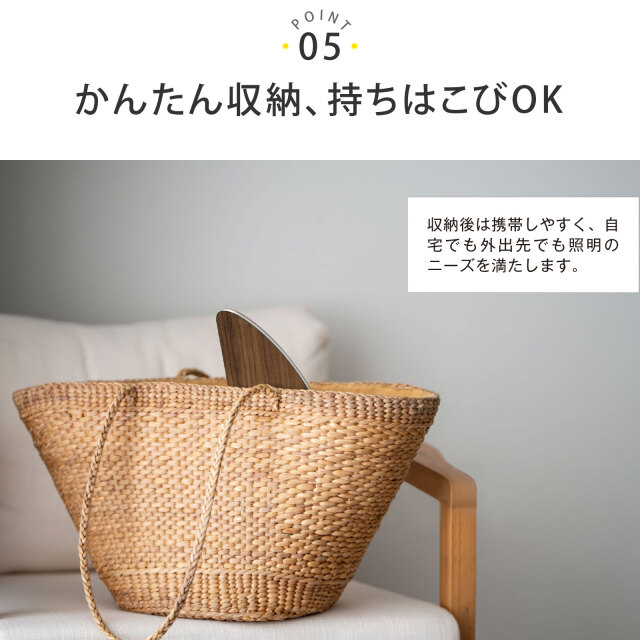 収納時は携帯しやすく、自宅でも外出先でも照明としてご利用になれます。