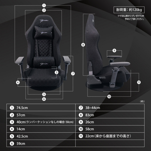 | 最大荷重 | 120kgまで |